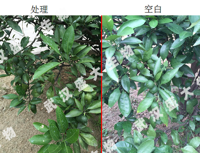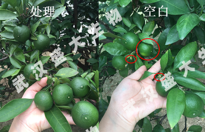 結(jié)論:在柑橘幼果期至膨果期葉面噴施“鈴丹”(稀釋800倍)+“霍元鉀”果蔬型(稀釋1000倍),可明顯促進柑橘果實膨大,提高果實光澤度,減少落果,改善葉片黃化。