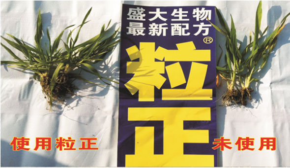 注:小麥噴施“粒正”,莖稈矮化,分蘗更多